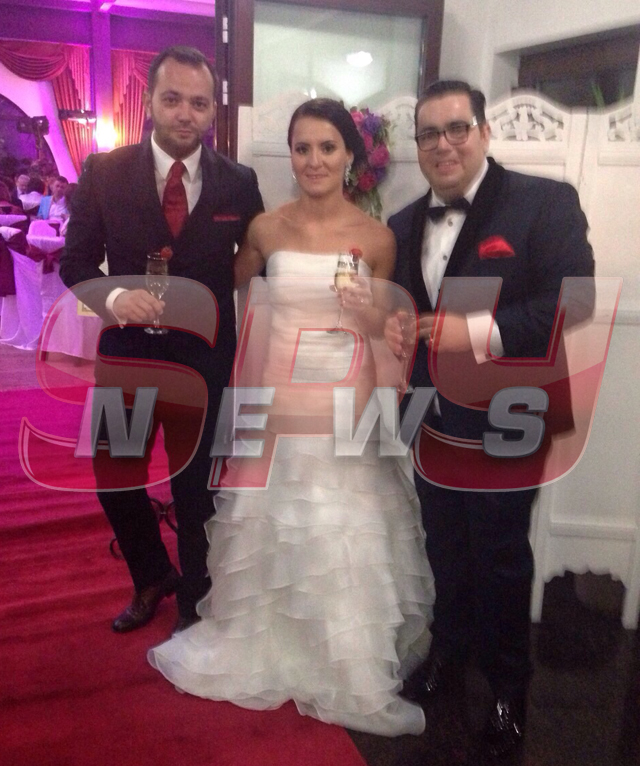 La nuntă, Răzvan Popescu a purtat un costum negru, cu cămaşă albă şi papion tot negru, la care a asortat o batistă roşie, în timp ce soţia sa a ales o rochie fără bretele, mulată până în zona abdomenului şi cu multe volane în partea de jos. Naşi au fost Dan Negru şi soţia sa.