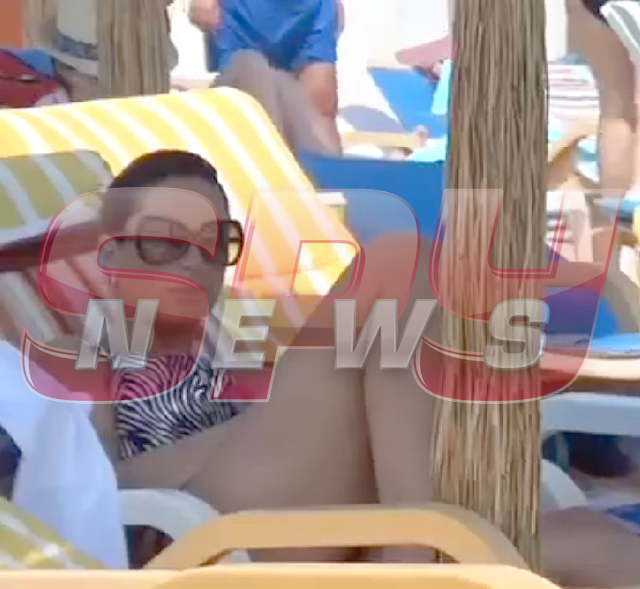 Chiar şi aşa, ascunsă sub umbrelă, Loredana a reuşit să atragă toate privirile cu formele ei voluptoase şi apetisante, timp în care, soţul ei a citit şi, printre picături, s-a jucat cu juniorul lui.