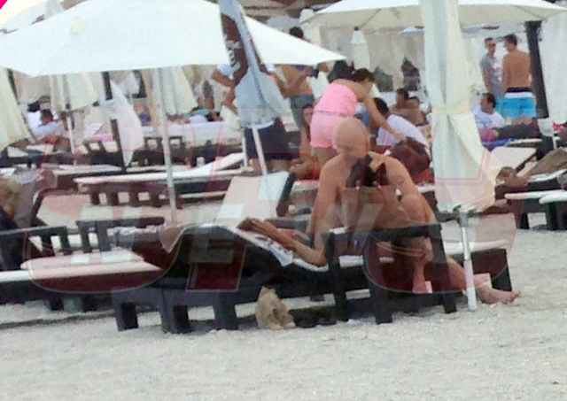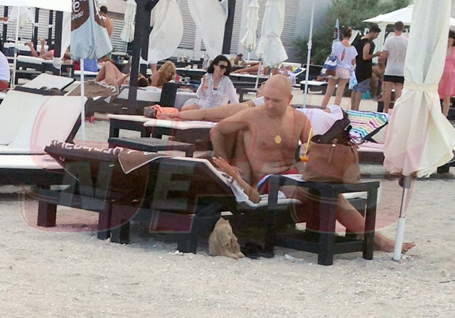 Cei doi îndrăgostiţi au venit singuri, s-au aşezat uşor retras şi şi-au văzut liniştiţi de momentul lor. Tânăra a profitat la maximum de soare, s-a întins pe şezlong, pentru a-şi colora corpul cât mai natural, nu înainte de a folosi o cremă cu protecţie solară. Timp în care, Costi Ioniţă o sorbea din priviri, o mângâia cu drag şi era atent să nu-i lipsească nimic şi să se simtă cât mai bine în compania lui. Şi credem că se simţea nu doar bine, ci şi în largul ei.