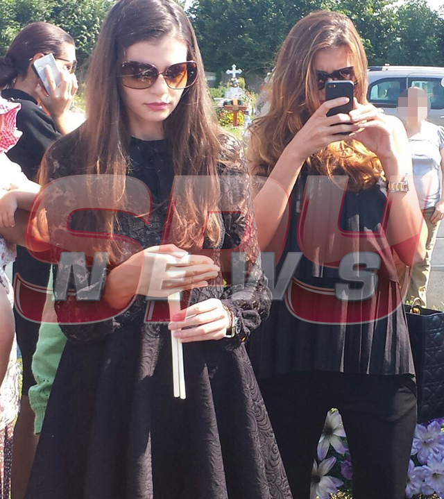Ramona Gabor a împărţit lumănări oamenilor prezenţi la ceremonie. Împietrită de durere, Monica a stat cu ochii în pământ şi cu mânile strânse, la fel ca şi tatăl ei.