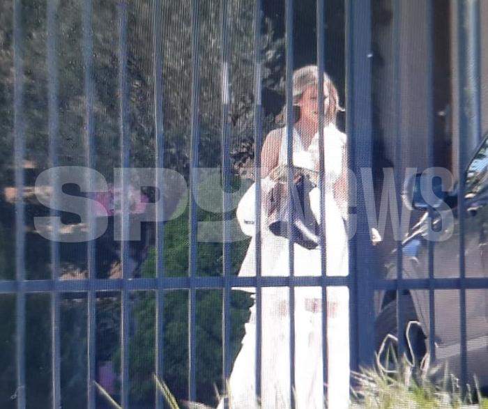 Orele 13:00. Gabriela Prisăcariu este surprinsă în timp ce iese cu o rochie superbă, de culoare albă. Fotomodelul arată spectaculos și radiază de bucurie. Desigur că pentru o asemenea zi atât de specială, blondina a ales și o coafură pe măsură, care se potrivește de minune cu ținuta și make-up-ul.