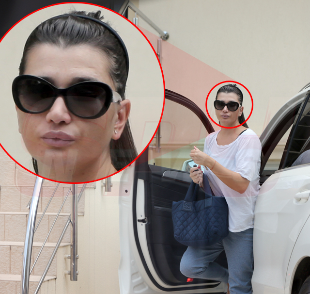 Cu ochelari de soare, de această dată machiată, Eba a făcu o vizită fulger pentru reparaţii, imperios necesare, în cazul ei.