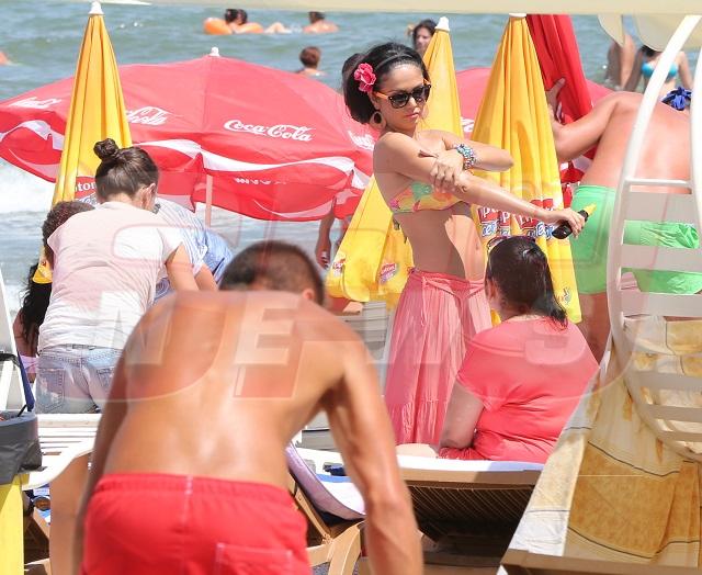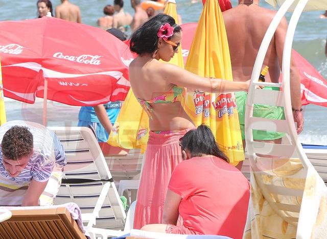 Mai matinală decât te-ai putea aștepta de la o vedetă care lucrează toată ziua și până târziu în noapte, Andreea Mantea și-a făcut apariția pe plaja de la Mamaia purtând un costum de baie din două bucăți și o fustă de plajă. S-a întâlnit acolo cu câteva amice de-ale ei și, stând de vorbă, fără să își dea seama ce spectacol total le oferă celor din jurul ei, a început să se ungă temeinic cu ulei de plajă.