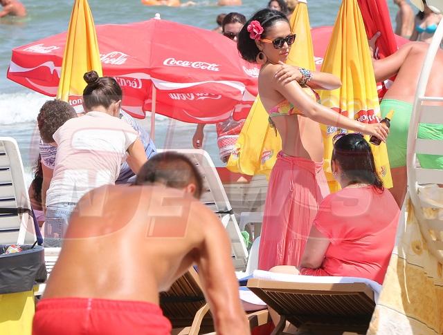 Absorbită de conversația purtată cu amica ei, focoasa brunetă care prezintă ”Petrecerea Burlăcițelor” la Antena Stars și-a dat jos fusta, moment în care bărbații din jurul ei – sau, cel puțin, cei slabi de înger – s-au prăbușit pe nisip. Și aveau toate motivele, Andreea având forme perfecte, corpul ei tonifiat fiind, cu siguranță, invidiat de toate femeile.