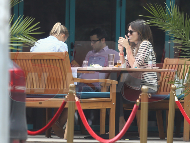 Vremea frumoasă a scos-o pe Maria Marinescu la terasă, unde a petrecut ore bune în compania unei prietene. Creatoarea de modă a preferat să nu consume vreun desert, însă, la un moment dat, a cedat ispitei, şi a gustat din prăjitura blondei care o însoţea.