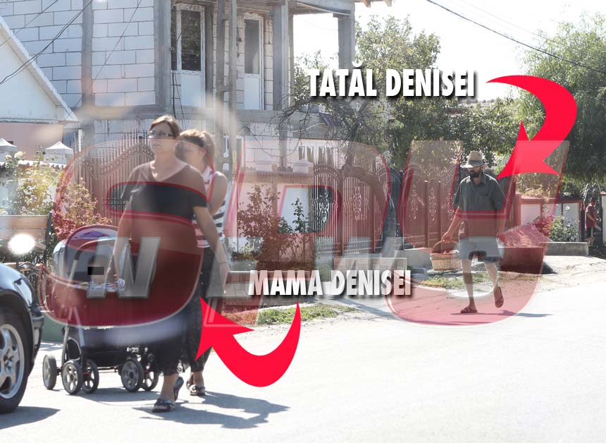 Îmbrăcată în haine de doliu, mama Denisei se plimba, alături de o vecină şi de copilul acesteia.