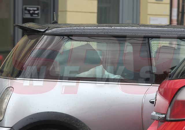 El a poposit preţ de câteva minute înăuntru, iar la plecare s-a luptat cu rochia pe care soţia o va purta peste câteva zile şi a înghesuit-o în maşina mică pe care o conduce.