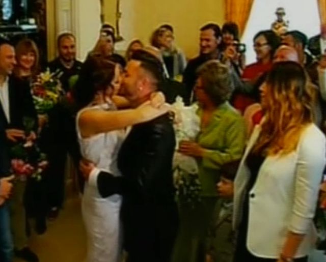 UPDATE: Înainte însă de a spune ”DA”, ofițerul stării civile a făcut oridine printre invitați și l-a cerut martorilor să se apropie de cuplul care s-a căsătorit. De-a lungul procedurilor care i-au oficializat relația, Gabi Cristea a zâmbit tot timpul, fericită ca niciodată, emoțiile fiind vizibile pe chipul ei. Când au ieşit, Tavi, mândru de alegerea făcută şi de faptul câ în sfârşit s-a oficializat totul, a "fluturat" actul de căsătorie in faţa tuturor prietenilor, familei şi camerelor din jurul lor.