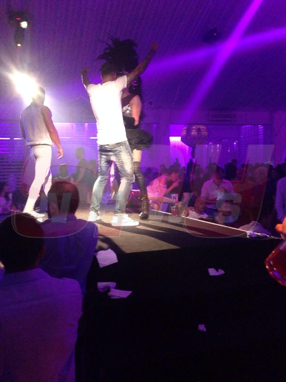 Ca să o împace, fotbalistul, depășind momentele de euforie, a mângâiat-o, tandru, pe față și, cu un zâmbet larg, ea l-a iertat pentru că a dansat cu travestitul în loc să o bage pe ea în seamă.