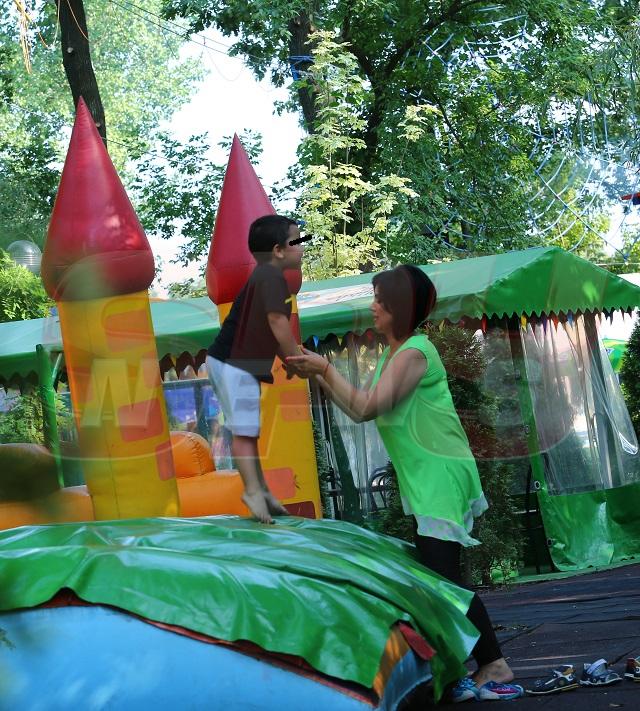 Așa că, în parc, Adriana s-a jucat din plin pe taboganele gonflabile, a sărit, alături de Maximus pe ele, timp în care îl supraveghea și pe Edi, cu un zâmbet care demonstra că este mai fericită ca niciodată.