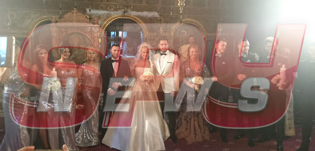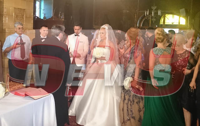 Anda Adam și Sorin au intrat în Biserica din Snagov. Artista, condusă cu grijă de tatăl ei, a fost așteptată de mire, la fel de emoționat ca și ea. Cu ochii strălucind de fericire, cei doi s-au luat de mână și, alături de nași, au așteptat ca preoții să înceapă sluiba.