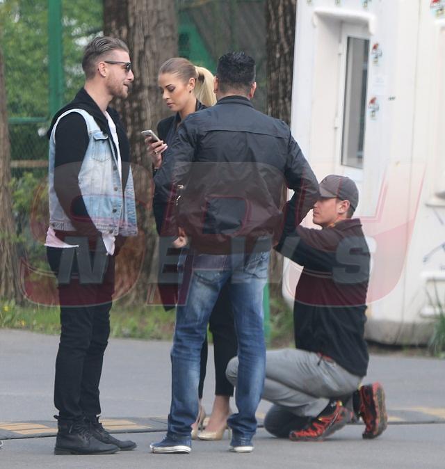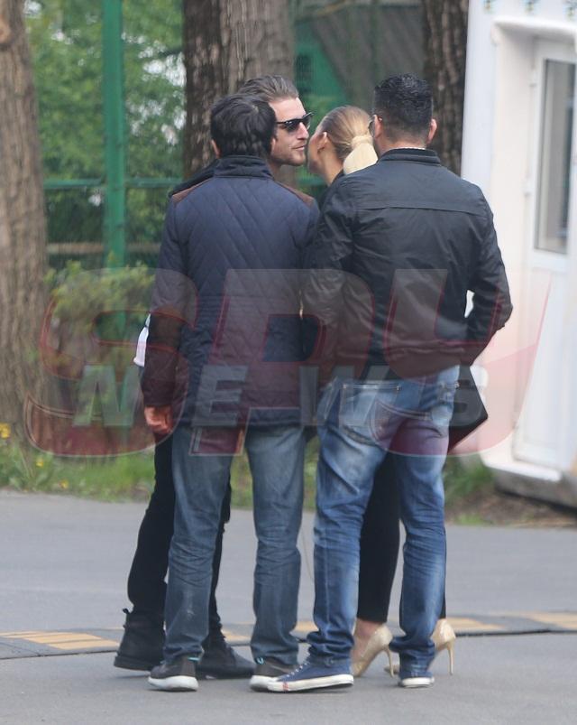 Cei doi însă, de cum s-au văzut, au început să își zâmbească unul altuia la modul cel mai incitant cu putință, iar Roxana, după ce a făcut cunoștință cu amicii artistului, l-a pupat de zor pe cântăreț. Evident, de ochii lumii, doar pe obraz, dar atracția dintre ei este de-a dreptul evidentă. Și, pentru ca ”tacâmul” să fie complet, cei doi, alături de amicii lui care au rămas puțin mai în spate, s-au plimbat minute bune pe aleile parcului în care s-au întâlnit...