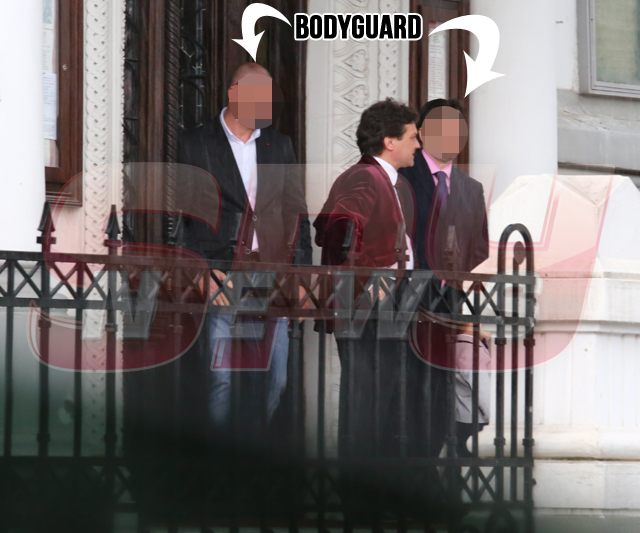 Ieri, după amiază, cu o oră înainte de începerea slujbei, în faţa bisericii au apărut mai mulţi bodyguarzi îmbrăcaţi în civil, care "au periat" zona. Mai precis, aceştia s-au asigurat că vedeta, soţul ei, afaceristul Dragoş Bîlteanu, şi invitaţii lor nu vor fi deranjaţi de vreun cerşetor insistent sau de jurnalişti. Aşa că după ce au transmis că totul este în ordine, la câteva minute după ora 16.00, limuzinele au început să sosească una câte una în faţa bisericii.