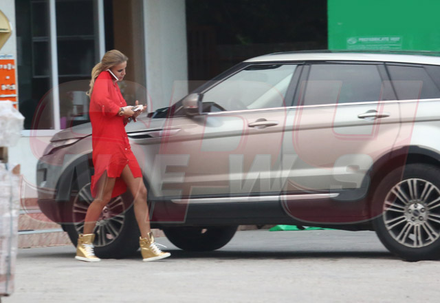 După ce şi-a terminat programul la atelierul de croitorie, fosta asistentă TV şi-a făcut planul să ia masa în oraş. Îmbrăcată într-o rochie roşie, blonda şi-a parcat tacticoasă bolidul, după care s-a îndreptat spre un restaurant din Herăstrău.