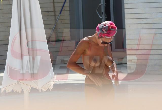 Dar, evident, a făcut-o în stil de divă XXX, apa curgându-i pe corp în timp ce, încet, încet, se cățăra pe marginea bazinului, știindu-se privită și admirată de bărbații care au avut norocul să fie în acea zi pe acolo.