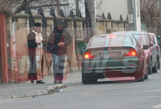 Dar, norocoasă din fire, pe când se odihnea puțin în mașină, preotul și-a făcut apariția și, fără să stea pe gânduri s-a întreptat glonț către mașina vedetei pe care s-a apucat să o stropească bine cu apă sfințită.