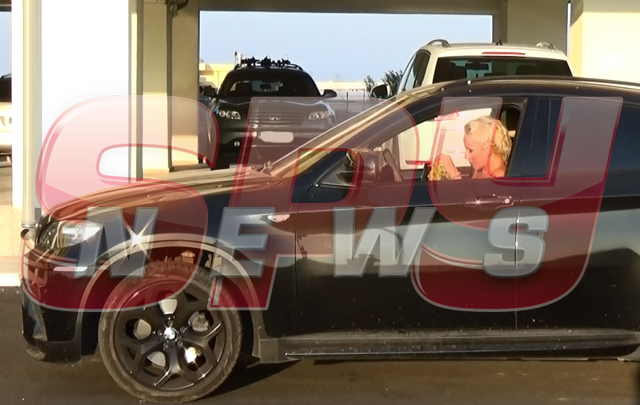 Şi-a parcat bolidul în faţa complexului de lux în care este cazată, după care a avut ceva de luat din portbagaj.