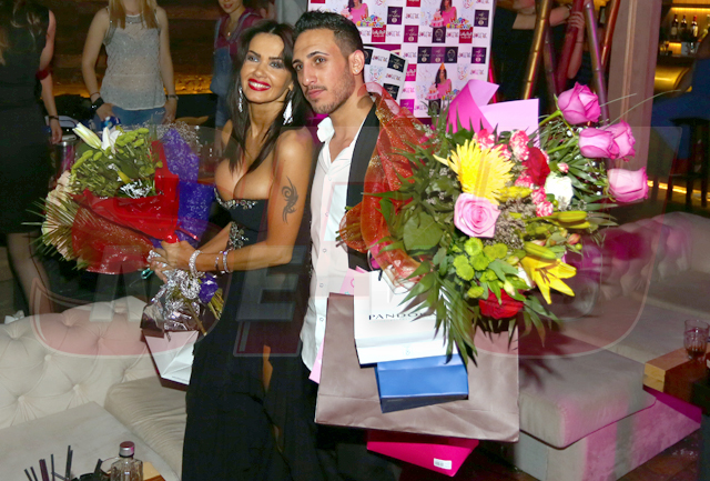 Spre finalul serii, când toţi se pregăteau să plece, pe rând, bruneta a rămas cu Tomer, cel care a ajutat-o să-şi ducă florile şi cadourile în maşină, şi Marius, administratorul ei, care a şi condus-o acasă.
