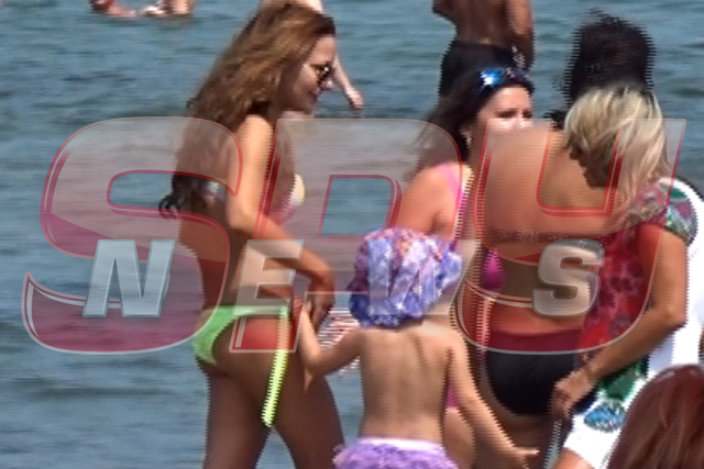 Conştientă de atuurile ei fizice, vedeta a adoptat un costum de baie din două piese, care să îi pună în valoare bustul şi posteriorul. Dacă nu ar fi avut-o pe fiica ei alături, nici nu ţi-ai fi imaginat că vedeta experimentează de mai bine de trei ani rolul de mamă pentru micuţa Sienna.