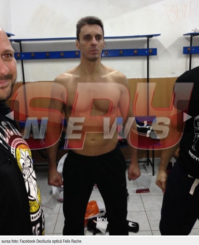 20.22 : Mircea Badea se află în ring alături de Teodor Emi. Sunt îmbrăcaţi în ţinute speciale. Prezentatorul tv poartă tibiere elastice special confecţionate pentru sportivii de performanţă.