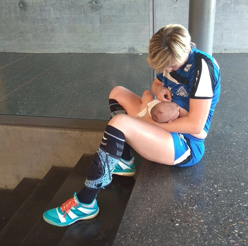 FOTO / Uluitor! O handbalistă din România şi-a alăptat copilul pe teren!