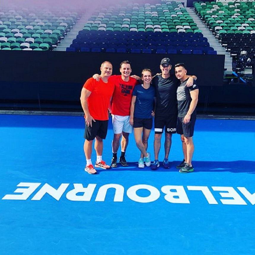 - Andrei Pavel, al doilea de la stânga la dreapta, alături de Simona Halep şi de staff-ul ei în Australia. SURSA FOTO: Instagram