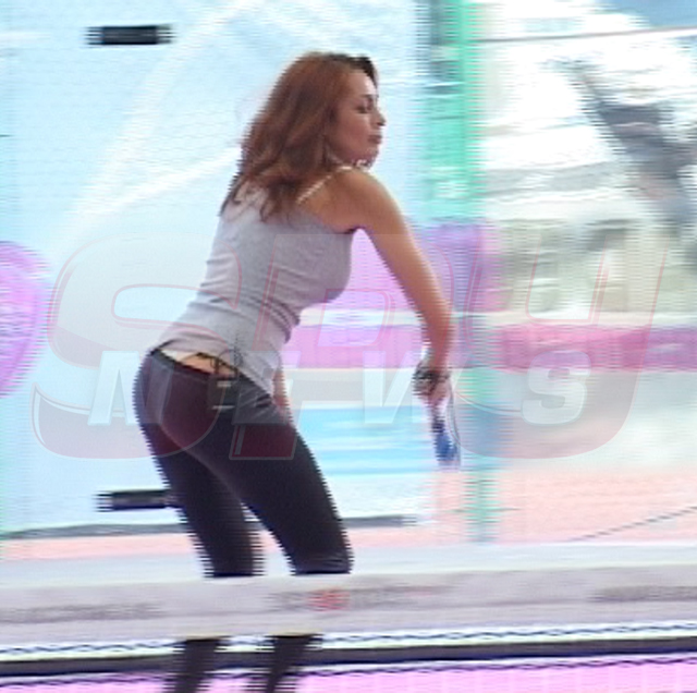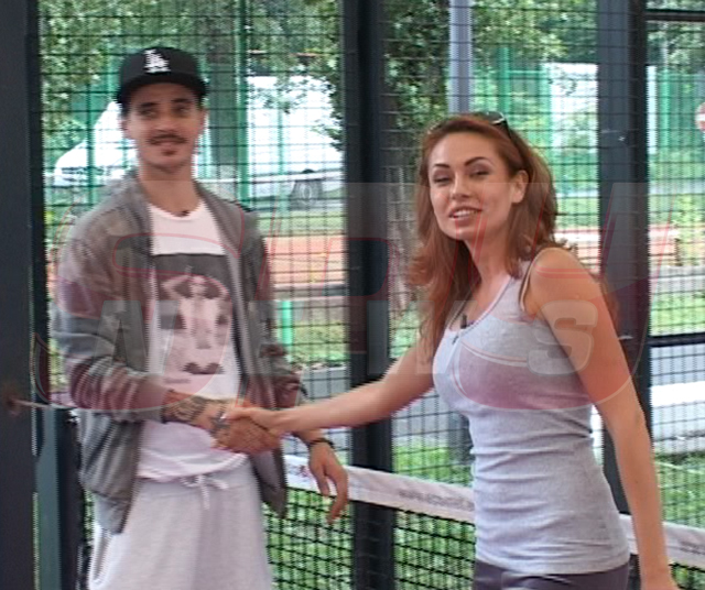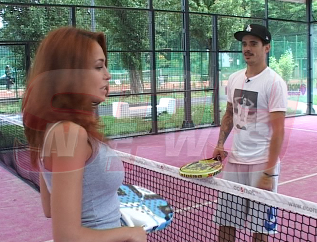 Curioasă din fire, sexy prezentatoarea l-a luat la puricat pe fotbalist, în timp ce schimbau mingi peste fileu. Îmbrăcaţi adecvat pentru sport, cei doi au trecut repede la treabă.