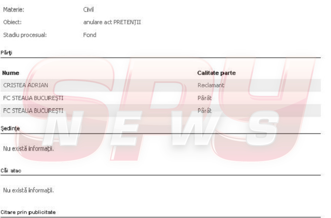 Adrian Cristea (31 de ani) a dat în judecată FC Steaua Bucureşti (FCSB) urmare a scandalului izbucnit în urmă cu un an şi jumătate, după plecarea acestuia de la clubul din Ghencea. Un prim termen de judecată nu a fost încă stabilit. Rămâne de văzut dacă "prinţul" intenţionează să renunţe la pretenţiile pe care le are de la Steaua s-au îşi va prezenta cazul în faţa judecătorilor.