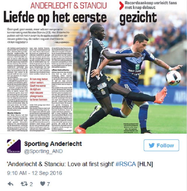 Cele mai frumoase cuvinte adresate dostului stelist au venit din partea site-ului hln.be: „Anderlecht & Stanciu: Dragoste la prima vedere”.