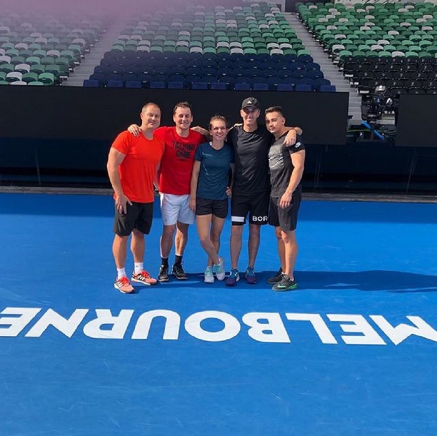 În această dimineaţă, favorita numărul 1 la câştigarea turneului de la Antipozi, s-a antrenat pe Rod Laver Arena. Pentru mai bine de o oră, Simona Halep a tras tare la şedinţa de pregătire, iar antrenorii săi au stat tot timpul cu gura pe ea. La final, Super-Simo şi oamenii din staff-ul său au susţinut o scurtă sesiune foto.