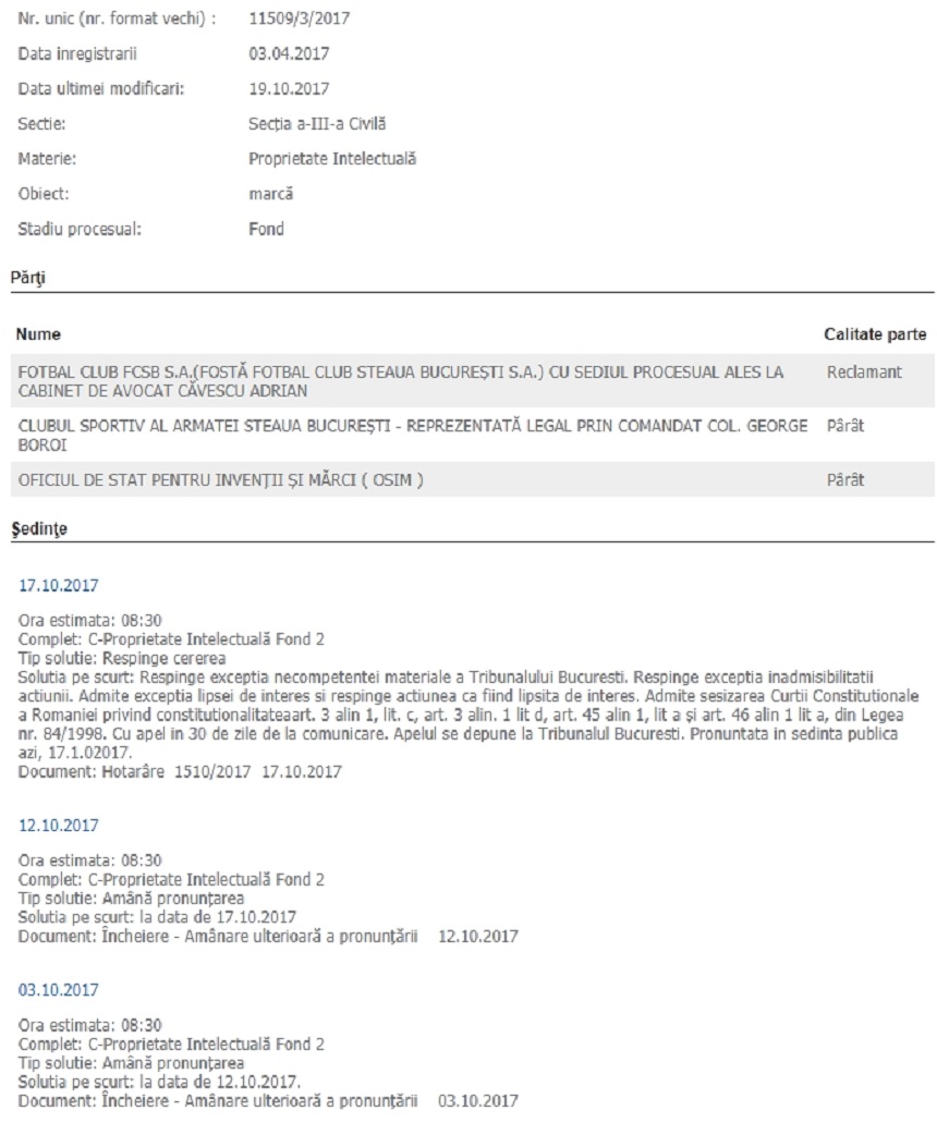 “Am cerut anularea tuturor mărcilor pe clasa 41. Păi cei de la Armată au externalizat fotbalul, l-au dat la Asociație și acum e la mine, ca succesor. Deci nu au făcut fotbal 15 ani. Nici nu au dreptul să facă fotbal, conform legii sportului, care nu permite să faci fotbal profesionist”, spunea, în luna aprilie, la Pro X, patronul clubului FCSB.
