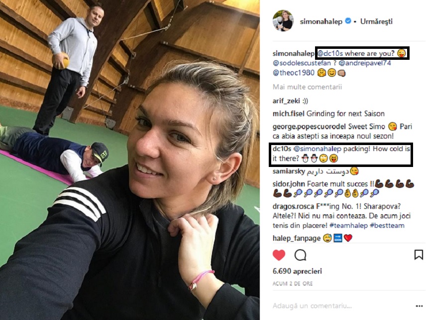 Recent, Halep a postat pe contul său de Instagram o fotografie în care apare alături de Andrei Pavel şi de Teo Cercel. Cea mai valoroasă jucătoare de tenis din lume l-a tăguit şi pe Cahill, apoi l-a întrebat: „Unde eşti?”.