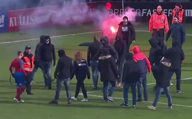 La finalul meciului cu Halmstads, pierdut de Helsingborg cu 1-2, ultraşii echipei antrenate de legendarul Henrik Larsson au pătruns pe teren, iar Jordan, fiul de 19 ani al acestuia a trăit momente horror.