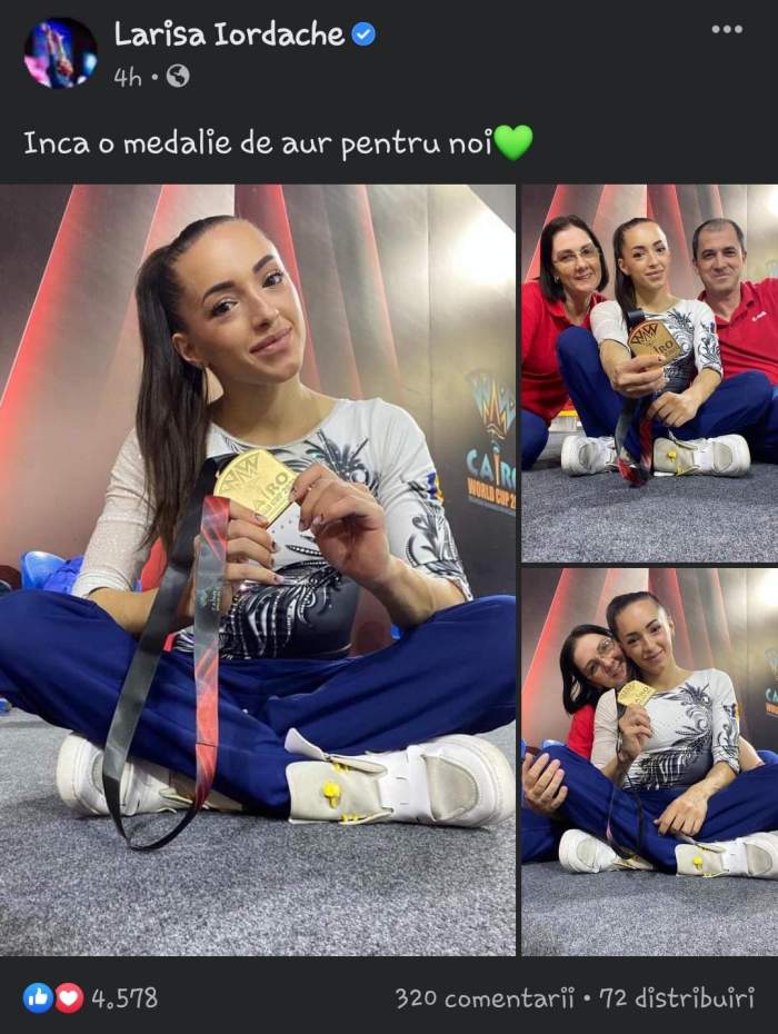 Prima postare făcută de Larisa Iordache în urma obținerii medaliei de aur