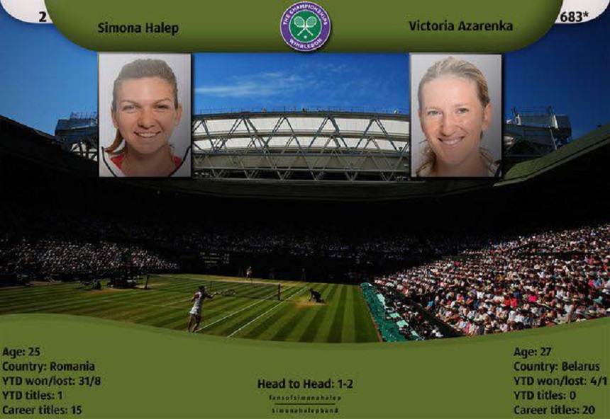 Simona Halep (25 de ani), locul 2 WTA o va întâlni, azi, după ora 16:15, pe Victoria Azarenka (27 de ani), poziția 683 în lume, în optimile de finală ale turneului de la Wimbledon.