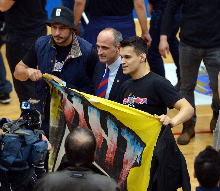 - Juristul CSA Steaua, Florin Talpan, înconjurat de suporteri stelişti. SURSA FOTO: Hepta