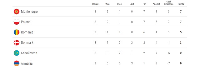 În acest moment, clasamentul în grupă se prezintă astfel: