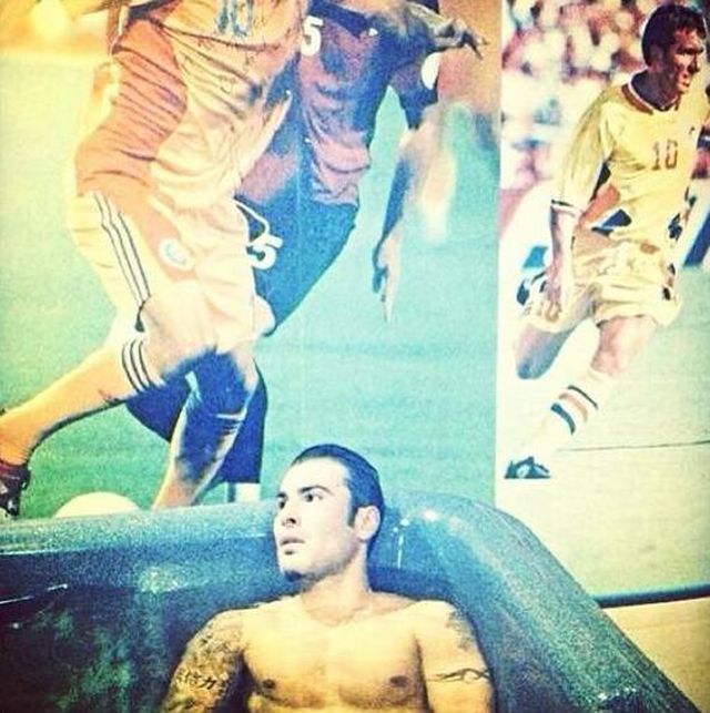 Adrian Mutu a ales o metodă mai puţin obişnuită pentru a se relaxa. Aceasta s-a băgat într-un jacuzzi cu apă rece. "Mă relaxez în apă rece", a scris acesta alături de o poză explicită. În apă până la gât şi atent la orice altceva mai puţin la aparat, Mutu pare relaxat, dar pierdut în gândurile lui.