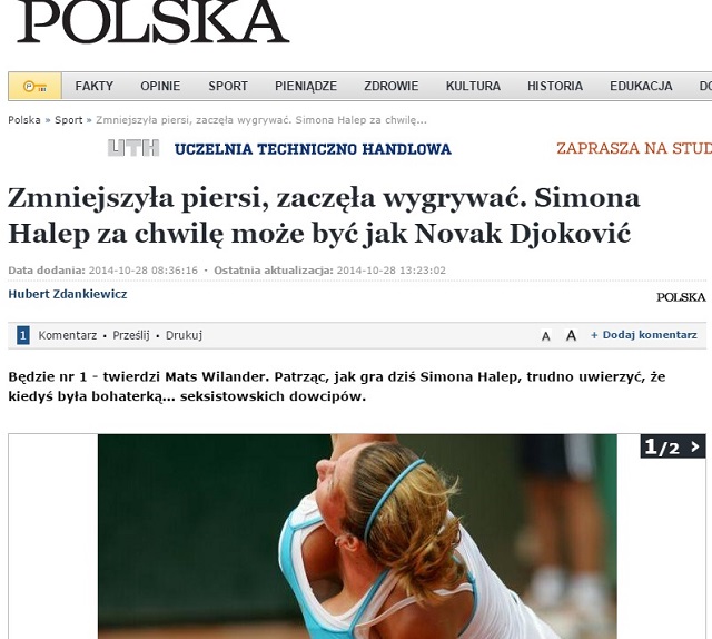 Simona Halep a devenit tot mai vizibilă în presa internaţională, însă nu doar din prisma rezultatelor obţinute pe terenul de tenis. Ziariştii cârcotaşi din Polonia au găsit în bustul româncei un nou subiect de dezbatere.