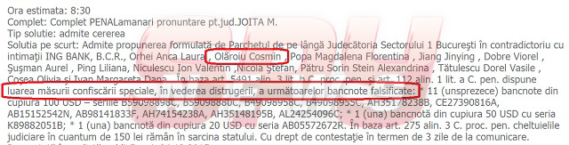 Totuşi, printre bancnotele dubioase s-au descoperit şi unele false. Conform documentelor intrate în posesia SPYNEWS, o instanţă din România a dispus, recent "luarea măsurii confiscării speciale, în vederea distrugerii, a următoarelor bancnote falsificate: 11 (unsprezece) bancnote din cupiura 100 USD – seriile B59098898C, B59098880C, B49098958C, B49098955C, AH35178238B, CE27390816A, AB15152542N, AB98141833F, AH74154238A, AH35148195B, AL24254096C; * 1 (una) bancnotă din cupiura 50 USD cu seria K89882051B; * 1 (una) bancnotă din cupiura 20 USD cu seria AB05572672R".