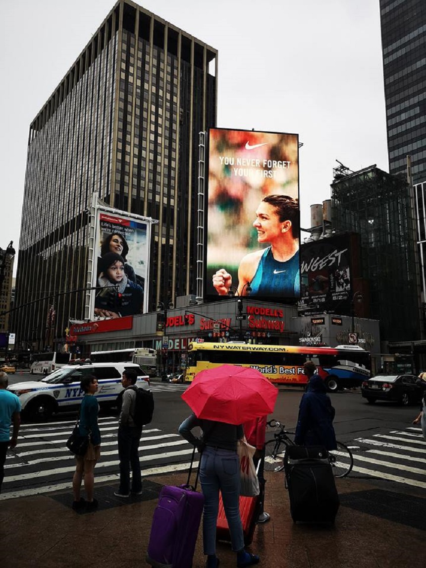Aceştia au cumpărat un spațiu publicitar de dimensiuni impresionante chiar în Madison Square Garden, din New York. „You never forget your first (n.r. - Primul nu se uită niciodată)” - au scris reprezentanţii companiei respective pe un panou uriaș pe care a fost imprimat chipul Simonei Halep.