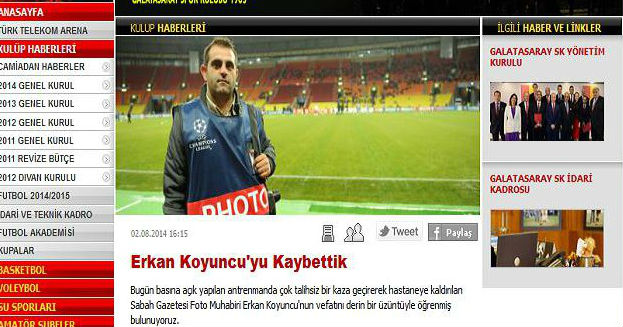 ”Dumnezeu să aibă milă de cel decedat şi de familia sa. Transmitem condoleanţe rudelor şi jurnaliştilor sportivi”, se arată într-un comunicat al clubului turc.