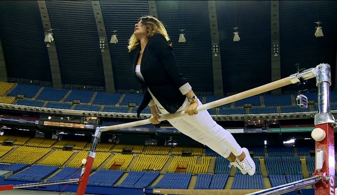 Nadia s-a urcat din nou pe bârnă și a început să execute mai multe elemente, în timp ce pe ecranele din sală rulau imaginile din timpul Jocurilor Olimpice din 1976.