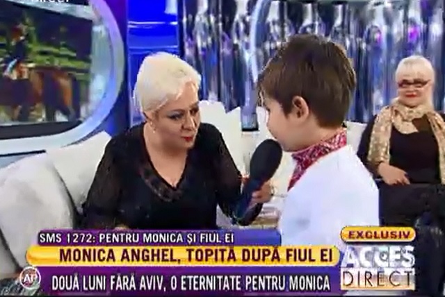 Monica Anghel a stat două luni fără fiul ei, care a fost în grija bunicii lui în toată această perioadă. "Toată lumea o întreabă pe Monica dacă nu i-a fost foarte greu să stea aşa mult timp departe de Aviv, dar pe mine nu mă întreabă nimeni cât de greu mi-a fost?!", a glumit mama cântăreţei, la "Acces Direct".