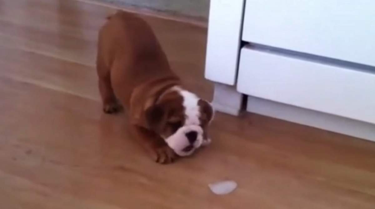 VIDEO/ Reacția unui buldog când vede un cub de gheață! Te vei amuza teribil!